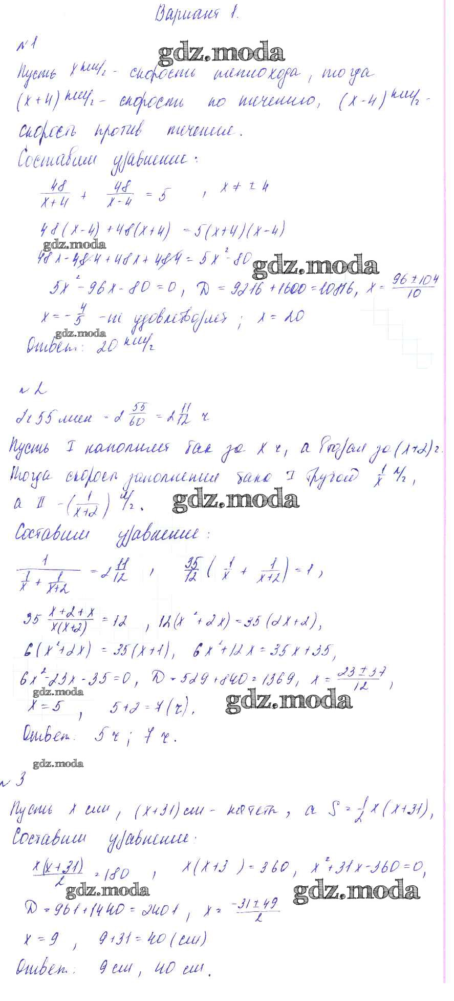 ГДЗ решение к заданию № Вариант-1 Алгебра 8 класс Дидактические материалы Зив Б.Г. Виктория плюс 2012 ФГОС бесплатно на гдз.мода!