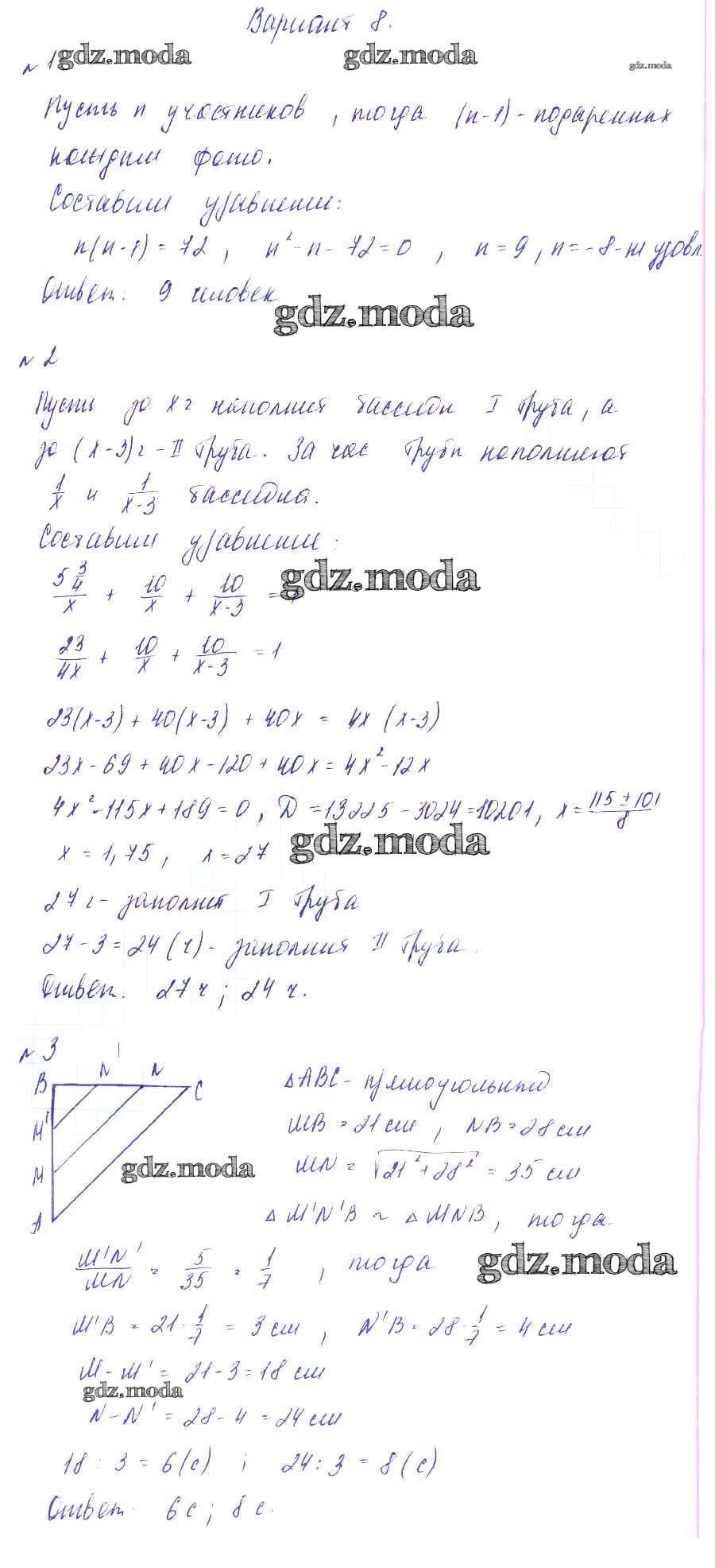 ОТВЕТ на задание № Вариант-8 Дидактические материалы по Алгебре 8 класс Зив