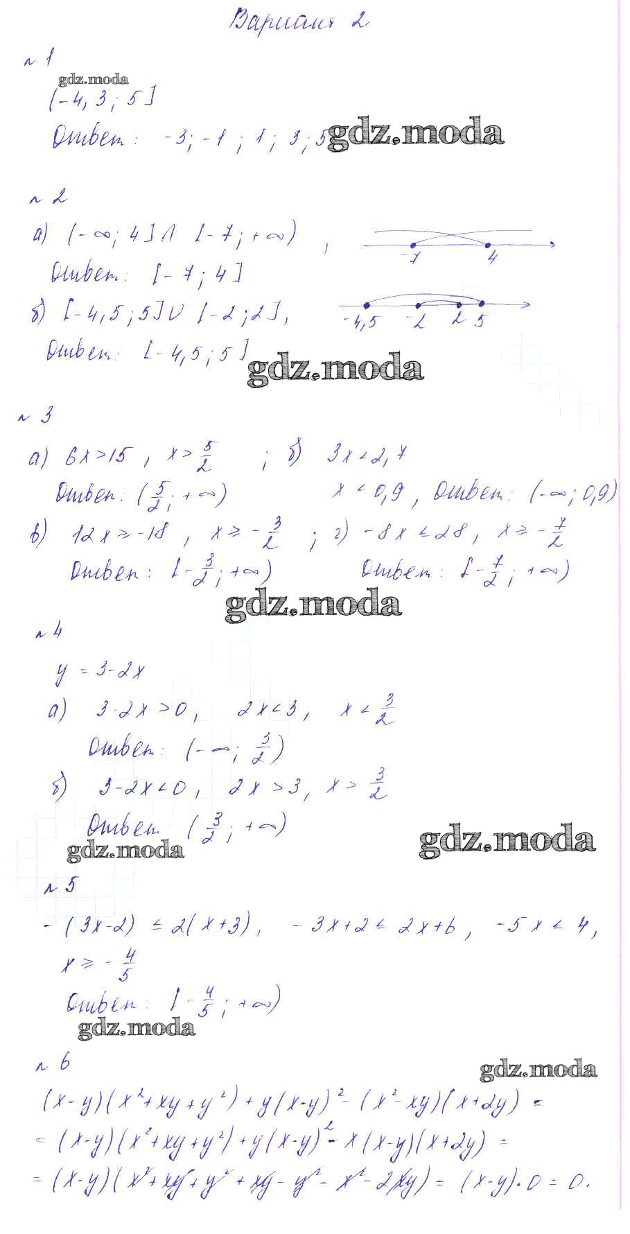 ГДЗ решение к заданию № Вариант-2 Алгебра 8 класс Дидактические материалы Зив Б.Г. Виктория плюс 2012 ФГОС бесплатно на гдз.мода!
