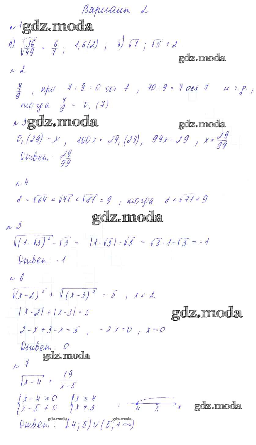 ГДЗ решение к заданию № Вариант-2 Алгебра 8 класс Дидактические материалы Зив Б.Г. Виктория плюс 2012 ФГОС бесплатно на гдз.мода!