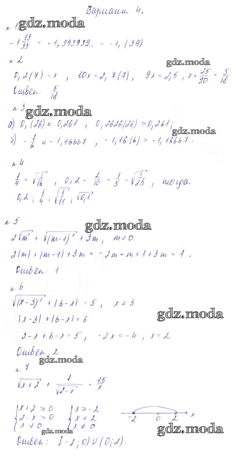 ГДЗ решение к заданию № Вариант-4 Алгебра 8 класс Дидактические материалы Зив Б.Г. Виктория плюс 2012 ФГОС бесплатно на гдз.мода!