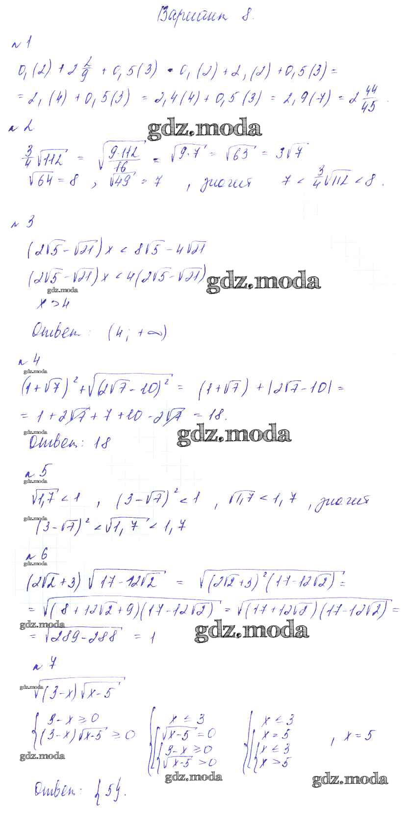 ГДЗ решение к заданию № Вариант-8 Алгебра 8 класс Дидактические материалы Зив Б.Г. Виктория плюс 2012 ФГОС бесплатно на гдз.мода!