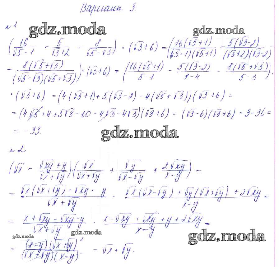 ГДЗ решение к заданию № Вариант-3 Алгебра 8 класс Дидактические материалы Зив Б.Г. Виктория плюс 2012 ФГОС бесплатно на гдз.мода!