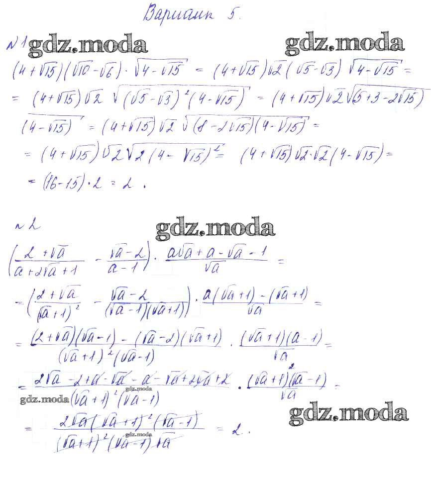 ГДЗ решение к заданию № Вариант-5 Алгебра 8 класс Дидактические материалы Зив Б.Г. Виктория плюс 2012 ФГОС бесплатно на гдз.мода!
