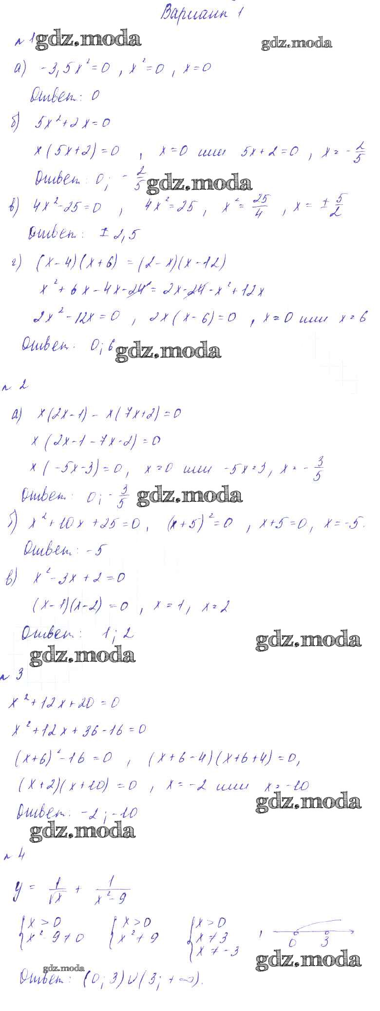 ГДЗ решение к заданию № Вариант-1 Алгебра 8 класс Дидактические материалы Зив Б.Г. Виктория плюс 2012 ФГОС бесплатно на гдз.мода!