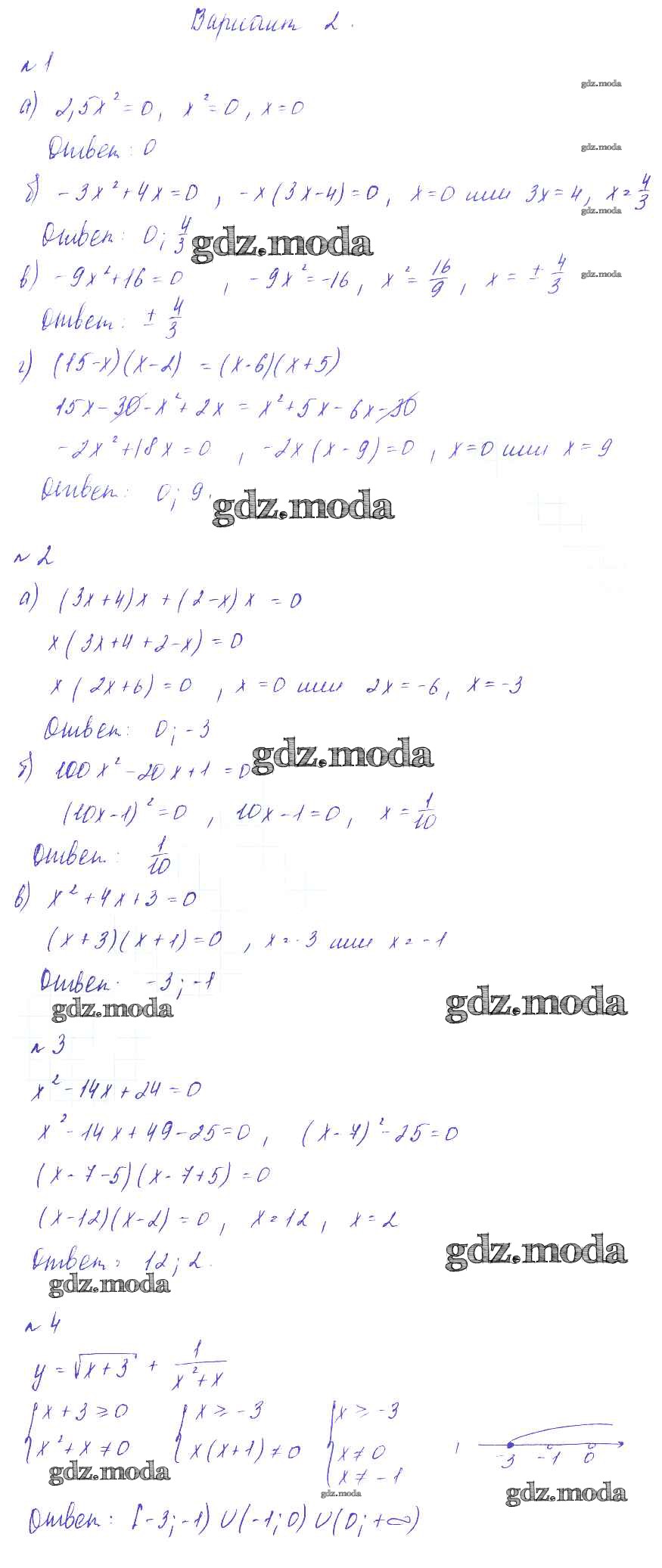ГДЗ решение к заданию № Вариант-2 Алгебра 8 класс Дидактические материалы Зив Б.Г. Виктория плюс 2012 ФГОС бесплатно на гдз.мода!