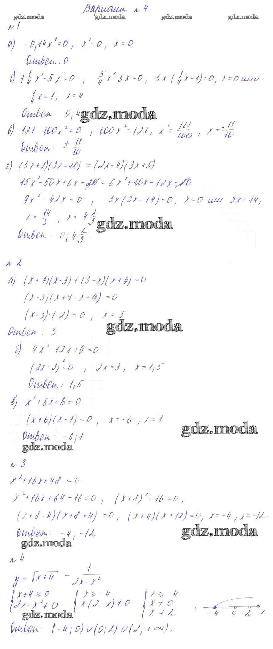 ГДЗ решение к заданию № Вариант-4 Алгебра 8 класс Дидактические материалы Зив Б.Г. Виктория плюс 2012 ФГОС бесплатно на гдз.мода!