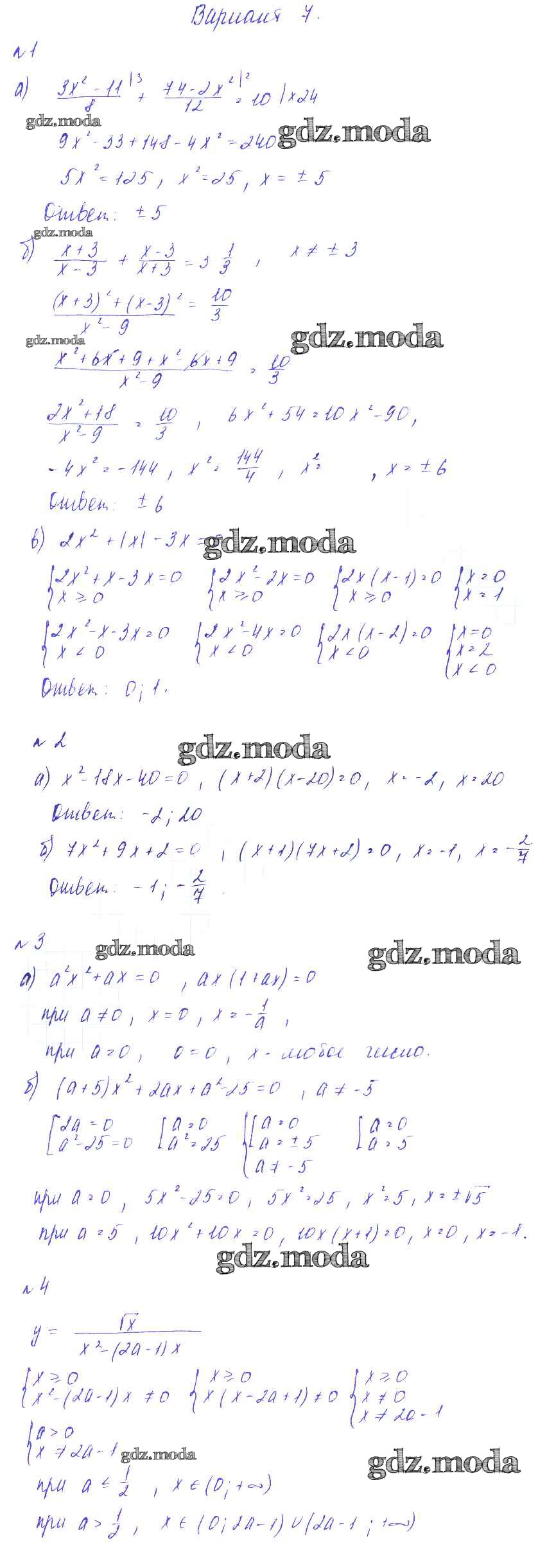 ГДЗ решение к заданию № Вариант-7 Алгебра 8 класс Дидактические материалы Зив Б.Г. Виктория плюс 2012 ФГОС бесплатно на гдз.мода!