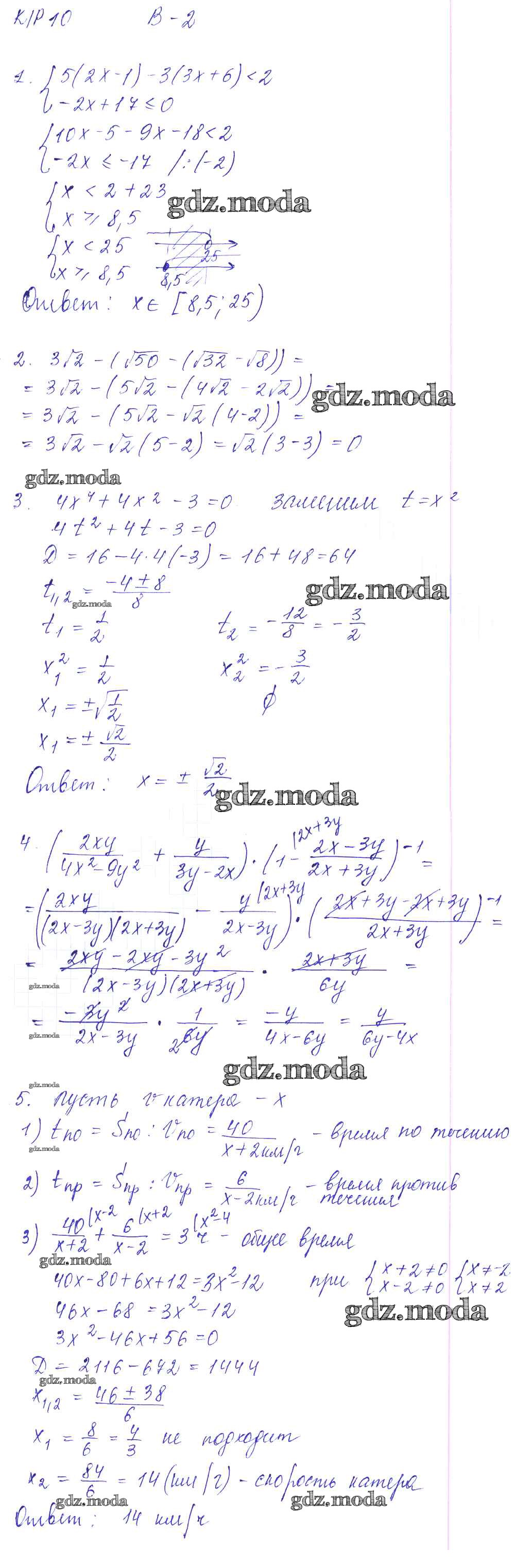 ОТВЕТ на задание № Вариант 2 Дидактические материалы по Алгебре 8 класс Звавич УМК