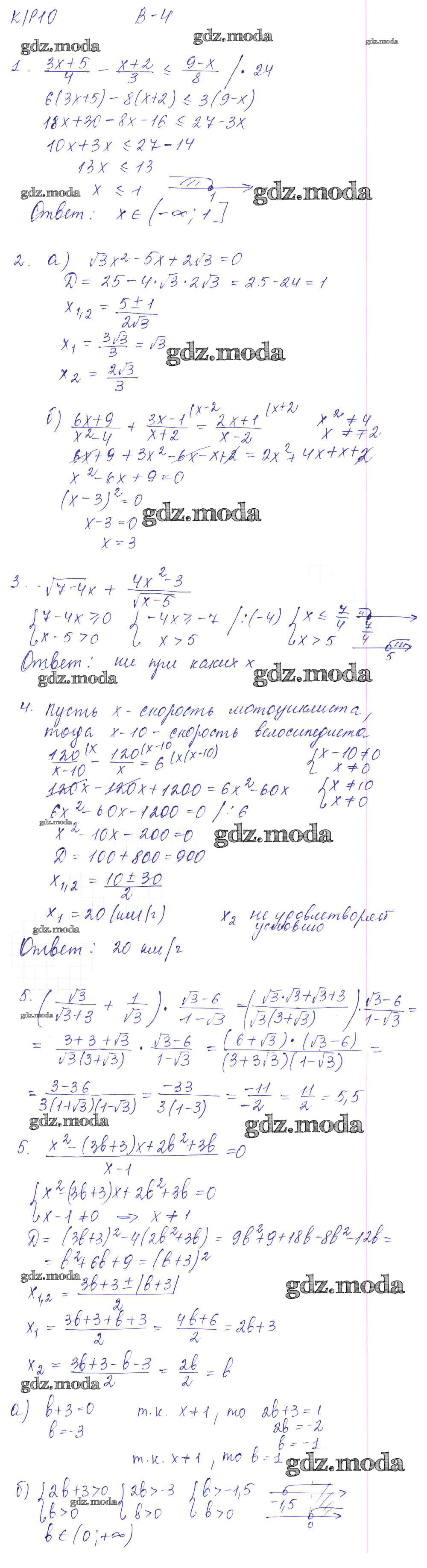ГДЗ решение к заданию № Вариант 4 Алгебра 8 класс Дидактические материалы Звавич Л.И. (к уч. Макарычева) Экзамен 2015 ФГОС бесплатно на гдз.мода!