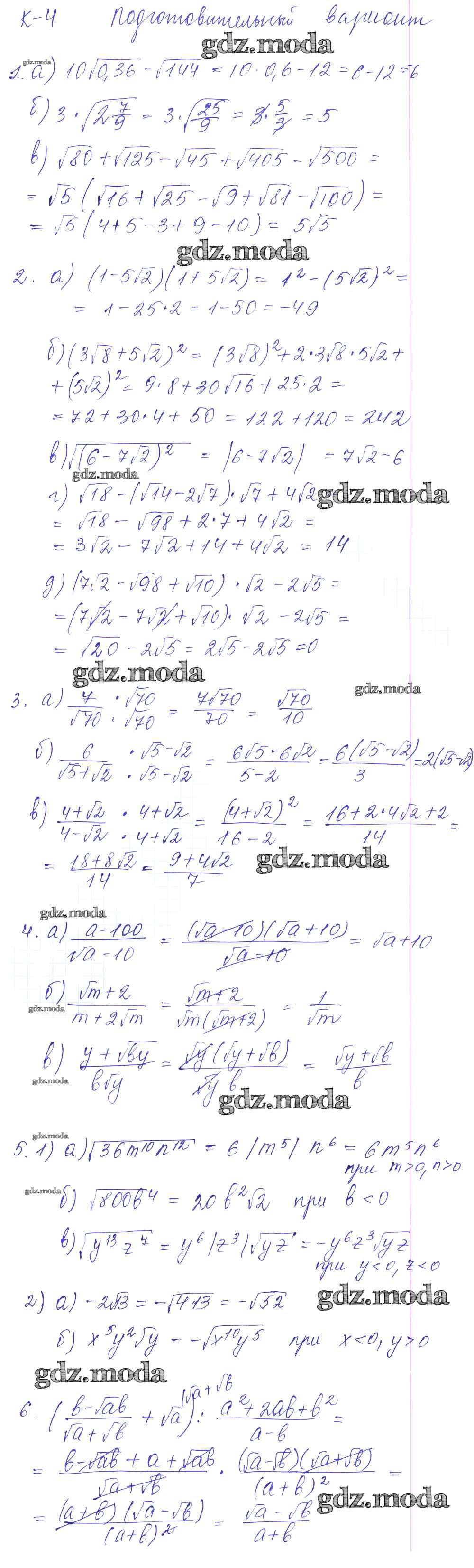 ОТВЕТ на задание № Подготовительный вариант Дидактические материалы по Алгебре 8 класс Звавич УМК