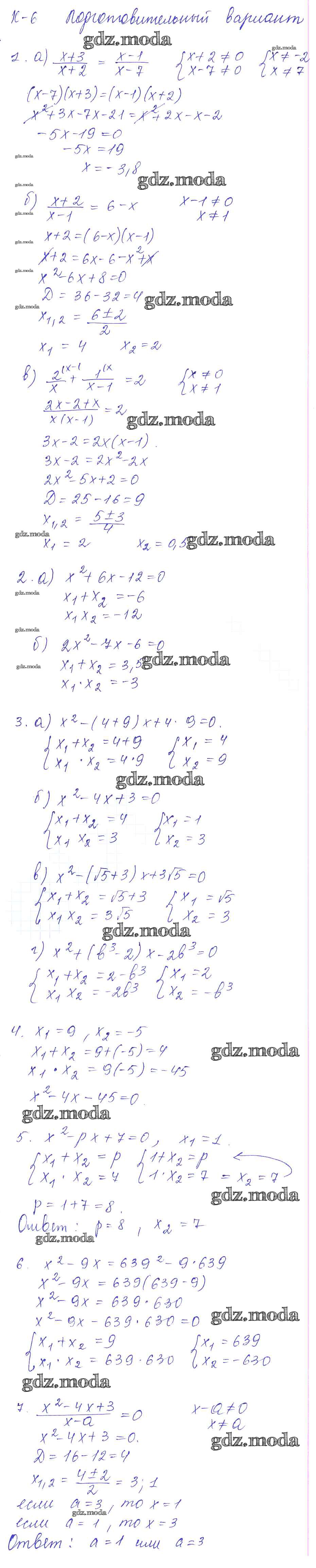 ОТВЕТ на задание № Подготовительный вариант Дидактические материалы по Алгебре 8 класс Звавич УМК