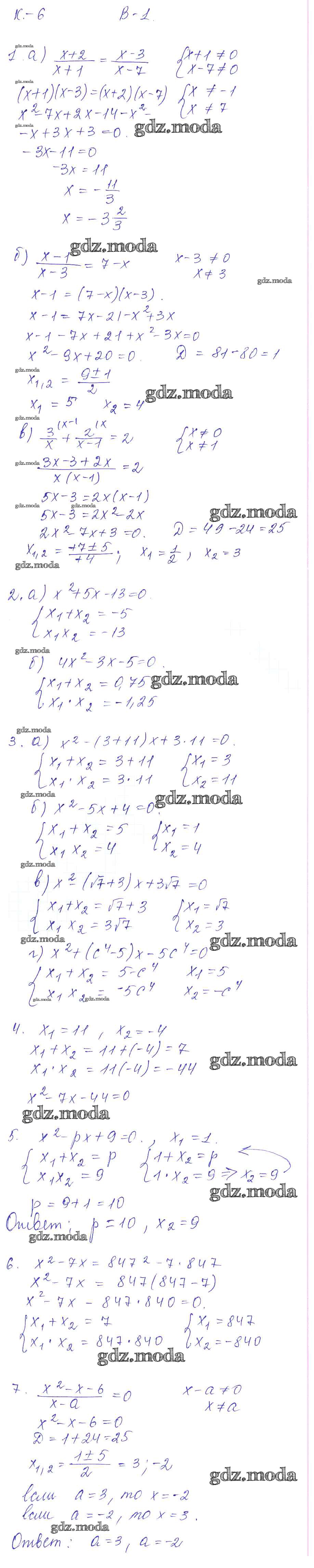ОТВЕТ на задание № Вариант 1 Дидактические материалы по Алгебре 8 класс Звавич УМК