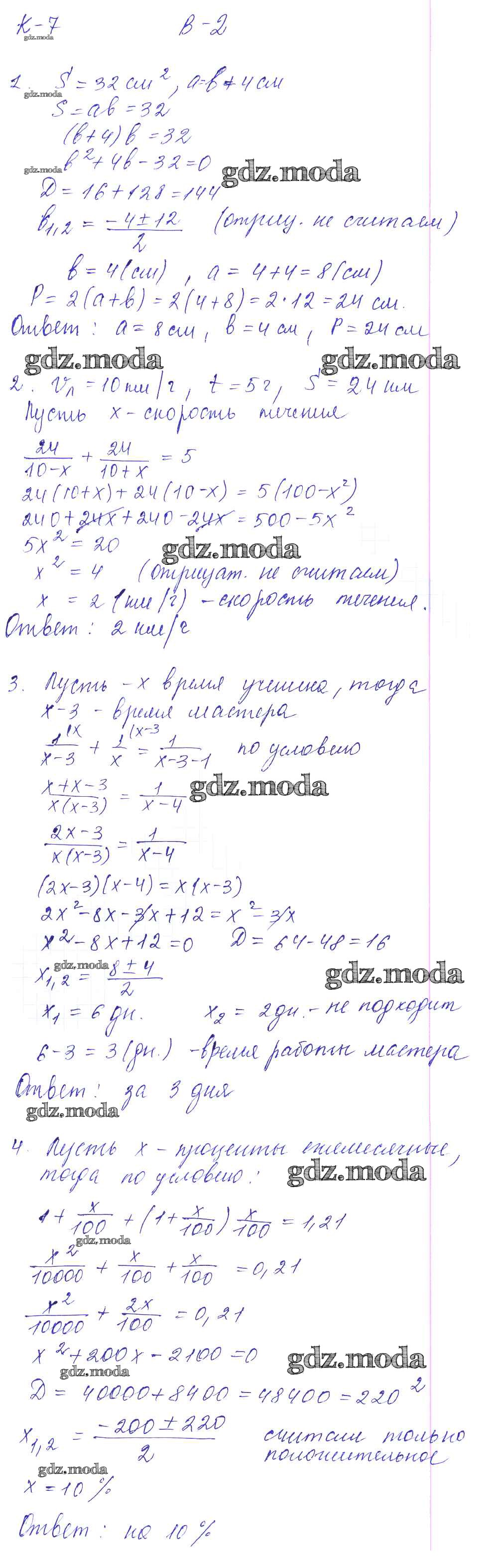 ОТВЕТ на задание № Вариант 2 Дидактические материалы по Алгебре 8 класс Звавич УМК