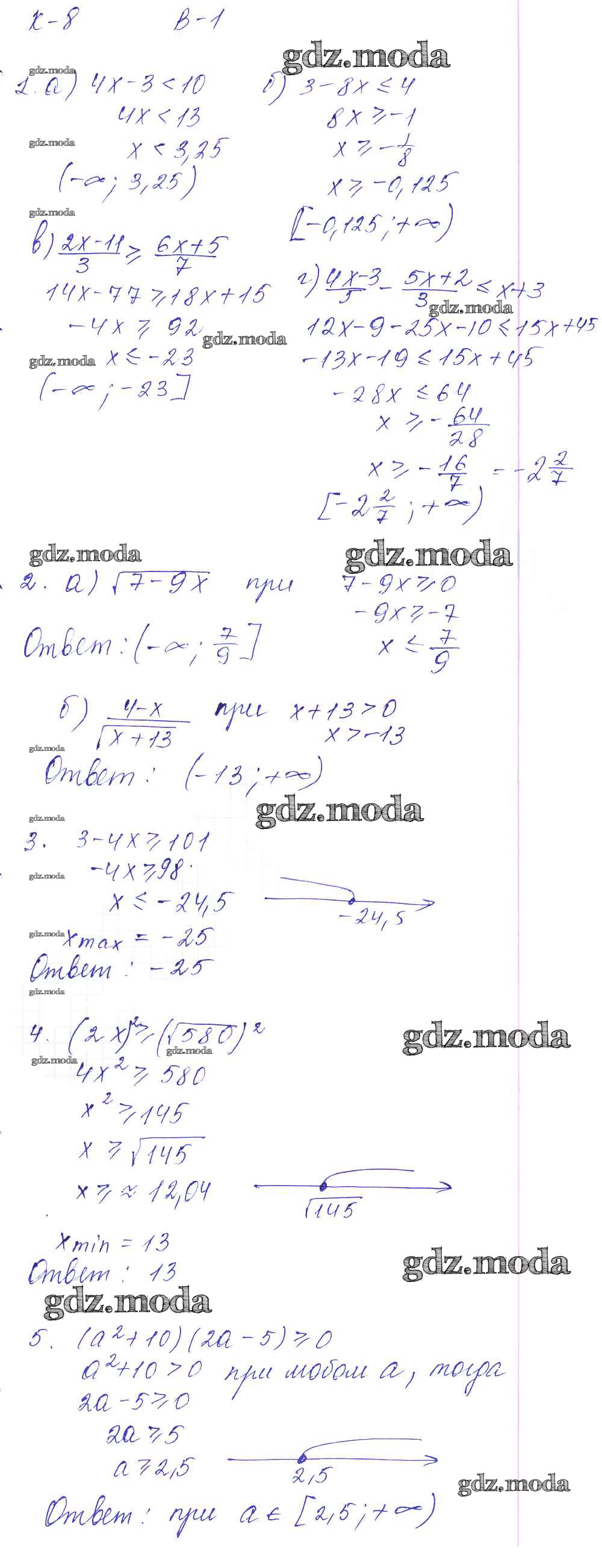 ГДЗ решение к заданию № Вариант 1 Алгебра 8 класс Дидактические материалы Звавич Л.И. (к уч. Макарычева) Экзамен 2015 ФГОС бесплатно на гдз.мода!
