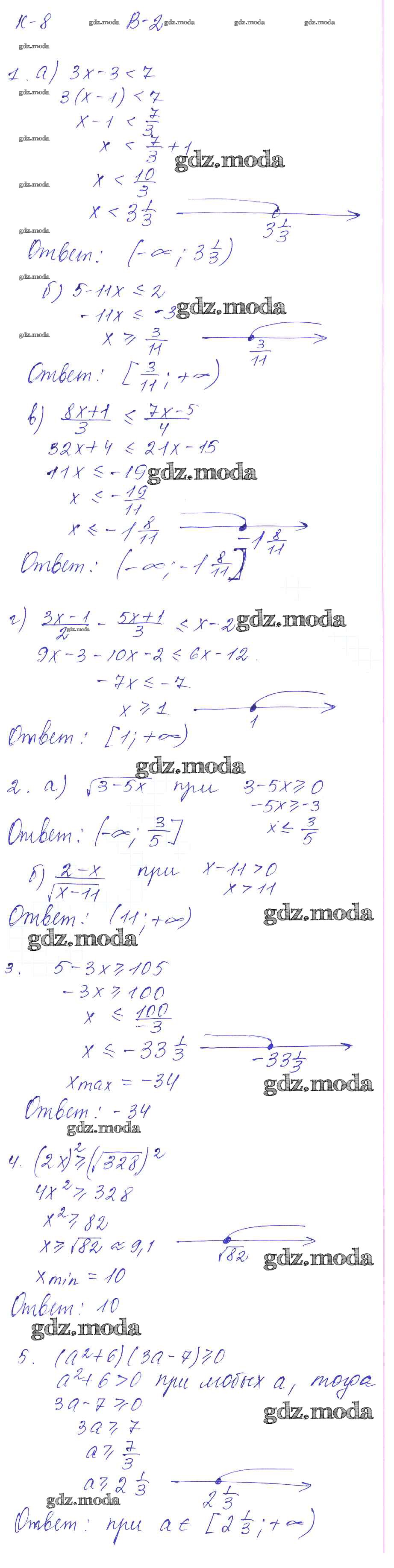 ОТВЕТ на задание № Вариант 2 Дидактические материалы по Алгебре 8 класс Звавич УМК