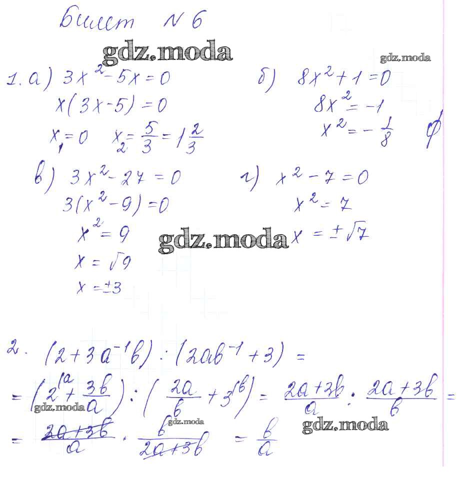 ГДЗ решение к заданию № 6 Алгебра 8 класс Дидактические материалы Звавич Л.И. (к уч. Макарычева) Экзамен 2015 ФГОС бесплатно на гдз.мода!