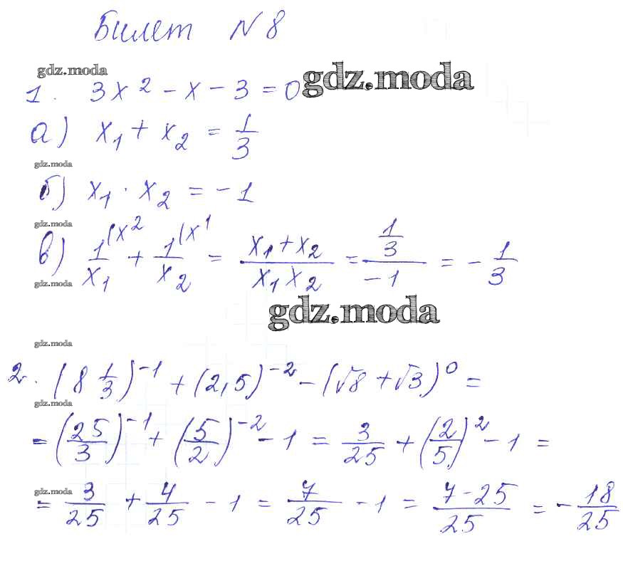 ГДЗ решение к заданию № 8 Алгебра 8 класс Дидактические материалы Звавич Л.И. (к уч. Макарычева) Экзамен 2015 ФГОС бесплатно на гдз.мода!