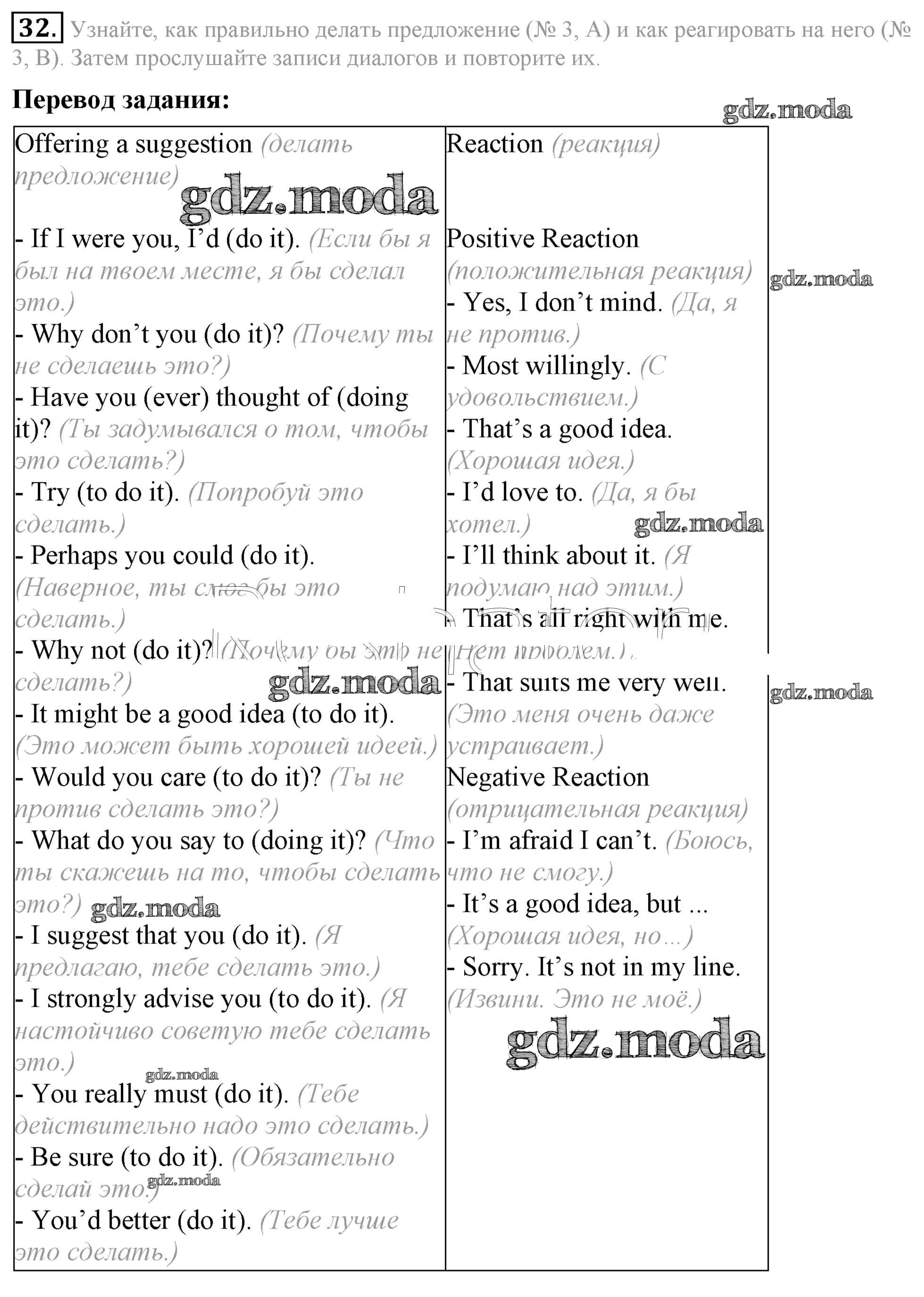 ГДЗ решение к заданию № 32 Английский язык 8 класс Афанасьева (Углубленный уровень) Просвещение 2014 Углубленный уровень ФГОС бесплатно на гдз.мода!