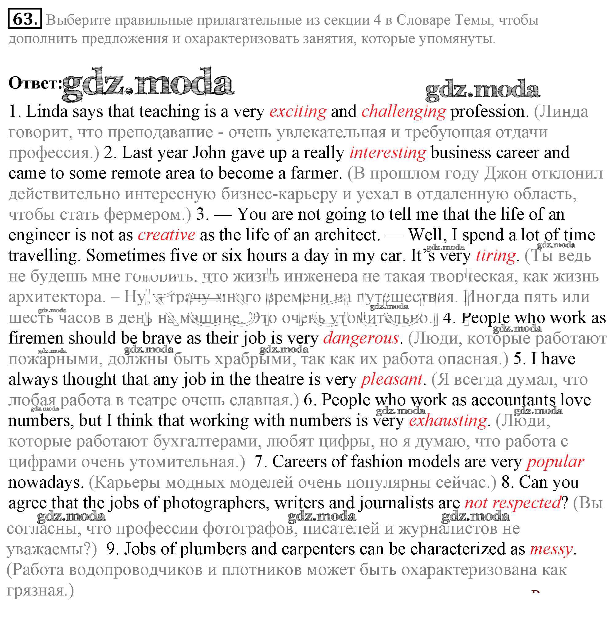 ГДЗ решение к заданию № 63 Английский язык 8 класс Афанасьева (Углубленный уровень) Просвещение 2014 Углубленный уровень ФГОС бесплатно на гдз.мода!