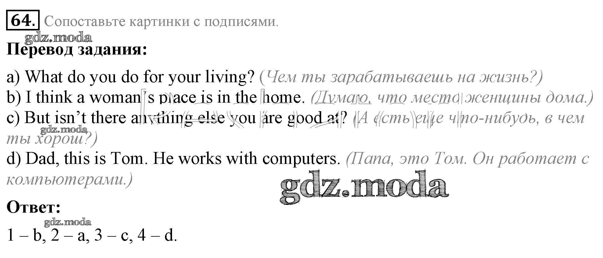 ГДЗ решение к заданию № 64 Английский язык 8 класс Афанасьева (Углубленный уровень) Просвещение 2014 Углубленный уровень ФГОС бесплатно на гдз.мода!