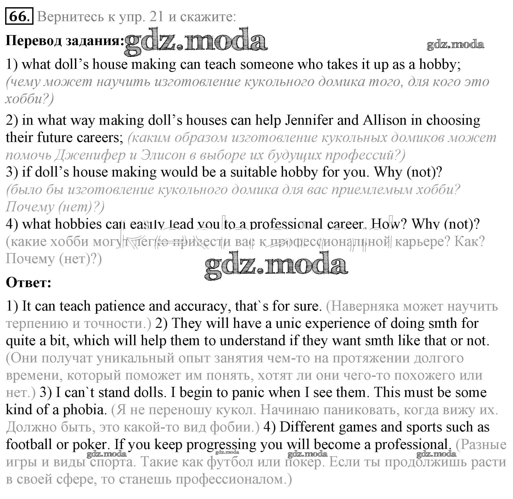 ГДЗ решение к заданию № 66 Английский язык 8 класс Афанасьева (Углубленный уровень) Просвещение 2014 Углубленный уровень ФГОС бесплатно на гдз.мода!
