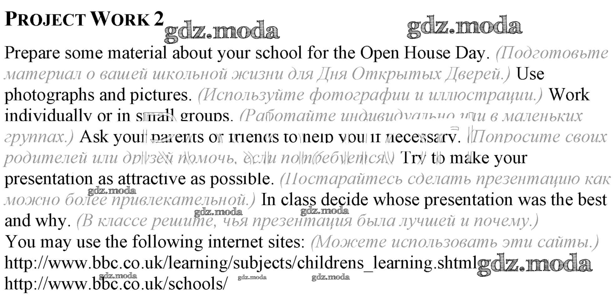 ГДЗ решение к заданию № Project Work Английский язык 8 класс Афанасьева (Углубленный уровень) Просвещение 2014 Углубленный уровень ФГОС бесплатно на гдз.мода!