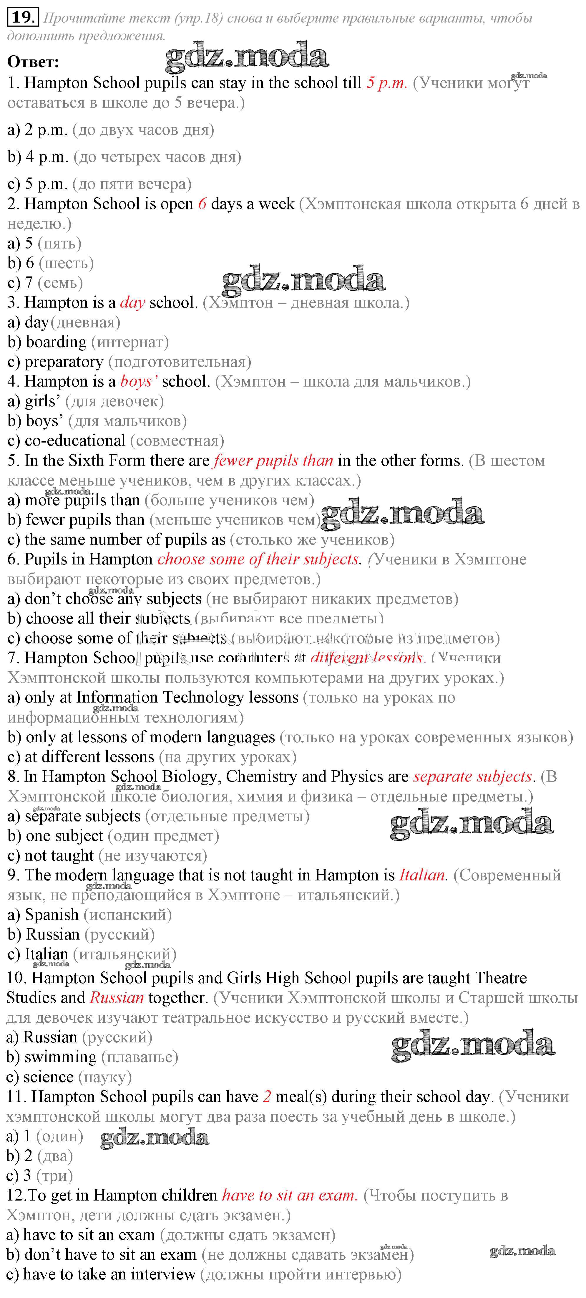 ГДЗ решение к заданию № 19 Английский язык 8 класс Афанасьева (Углубленный уровень) Просвещение 2014 Углубленный уровень ФГОС бесплатно на гдз.мода!