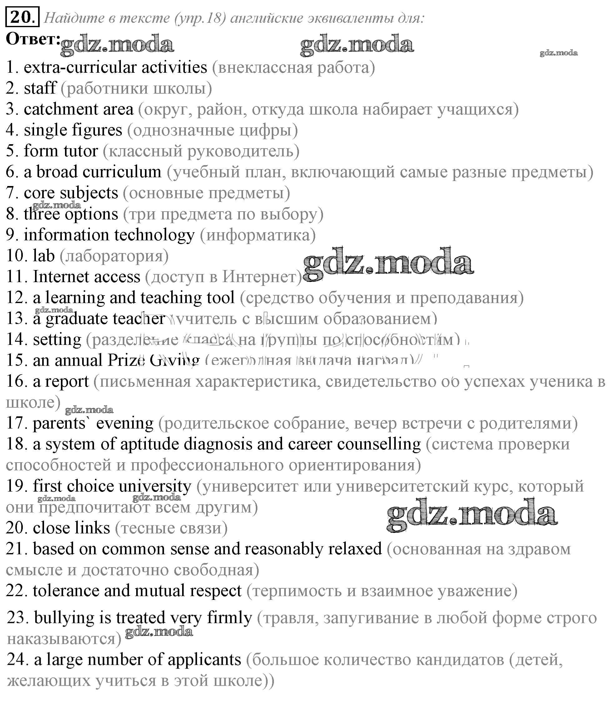 ГДЗ решение к заданию № 20 Английский язык 8 класс Афанасьева (Углубленный уровень) Просвещение 2014 Углубленный уровень ФГОС бесплатно на гдз.мода!