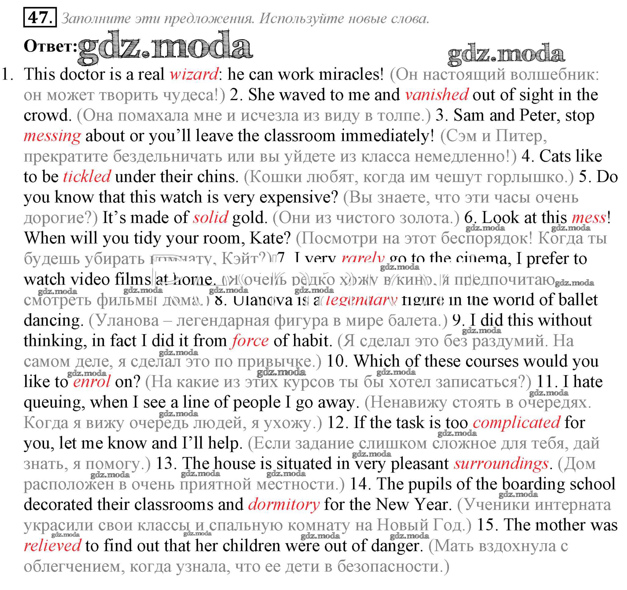 ГДЗ решение к заданию № 47 Английский язык 8 класс Афанасьева (Углубленный уровень) Просвещение 2014 Углубленный уровень ФГОС бесплатно на гдз.мода!
