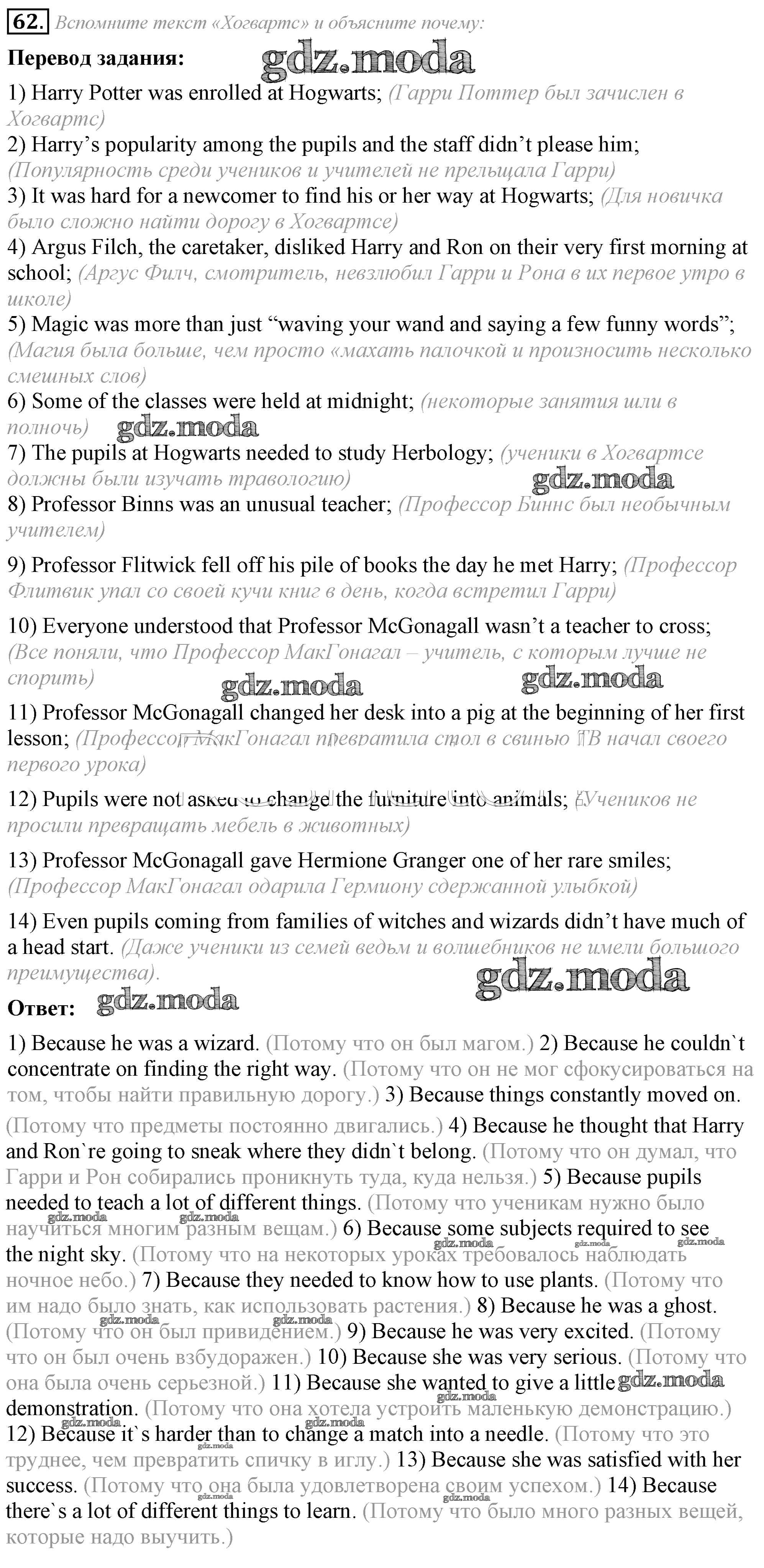 ГДЗ решение к заданию № 62 Английский язык 8 класс Афанасьева (Углубленный уровень) Просвещение 2014 Углубленный уровень ФГОС бесплатно на гдз.мода!