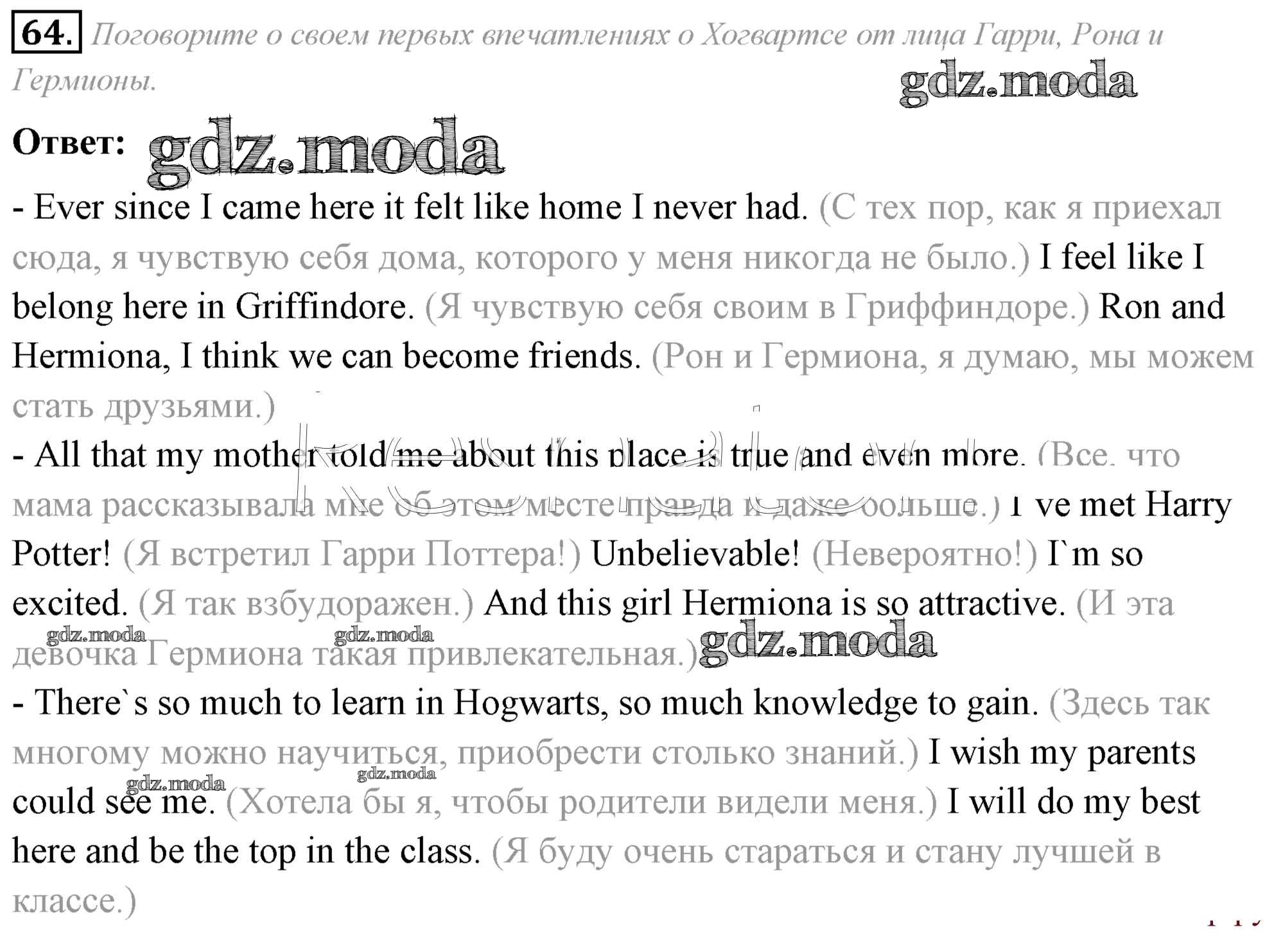 ГДЗ решение к заданию № 64 Английский язык 8 класс Афанасьева (Углубленный уровень) Просвещение 2014 Углубленный уровень ФГОС бесплатно на гдз.мода!