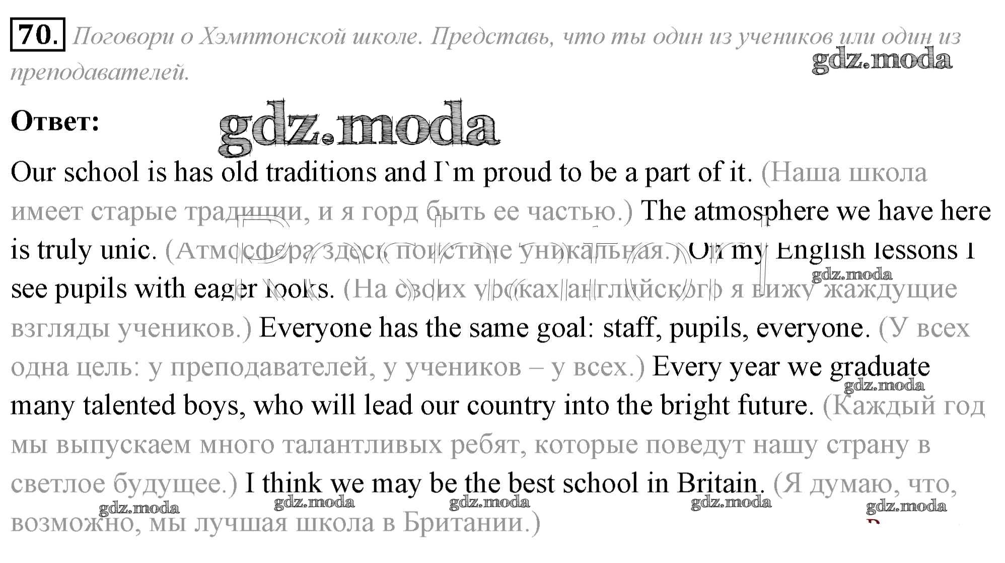 ГДЗ решение к заданию № 70 Английский язык 8 класс Афанасьева (Углубленный уровень) Просвещение 2014 Углубленный уровень ФГОС бесплатно на гдз.мода!