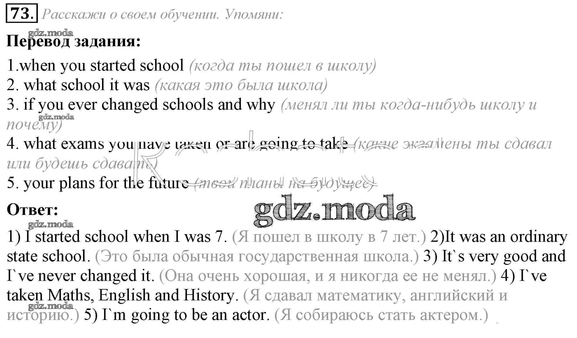 ГДЗ решение к заданию № 73 Английский язык 8 класс Афанасьева (Углубленный уровень) Просвещение 2014 Углубленный уровень ФГОС бесплатно на гдз.мода!