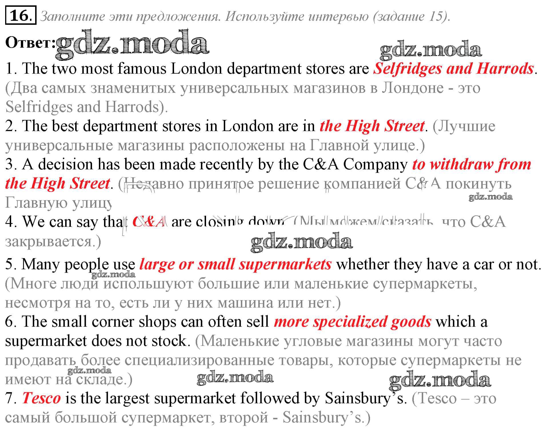 ГДЗ решение к заданию № 16 Английский язык 8 класс Афанасьева (Углубленный уровень) Просвещение 2014 Углубленный уровень ФГОС бесплатно на гдз.мода!