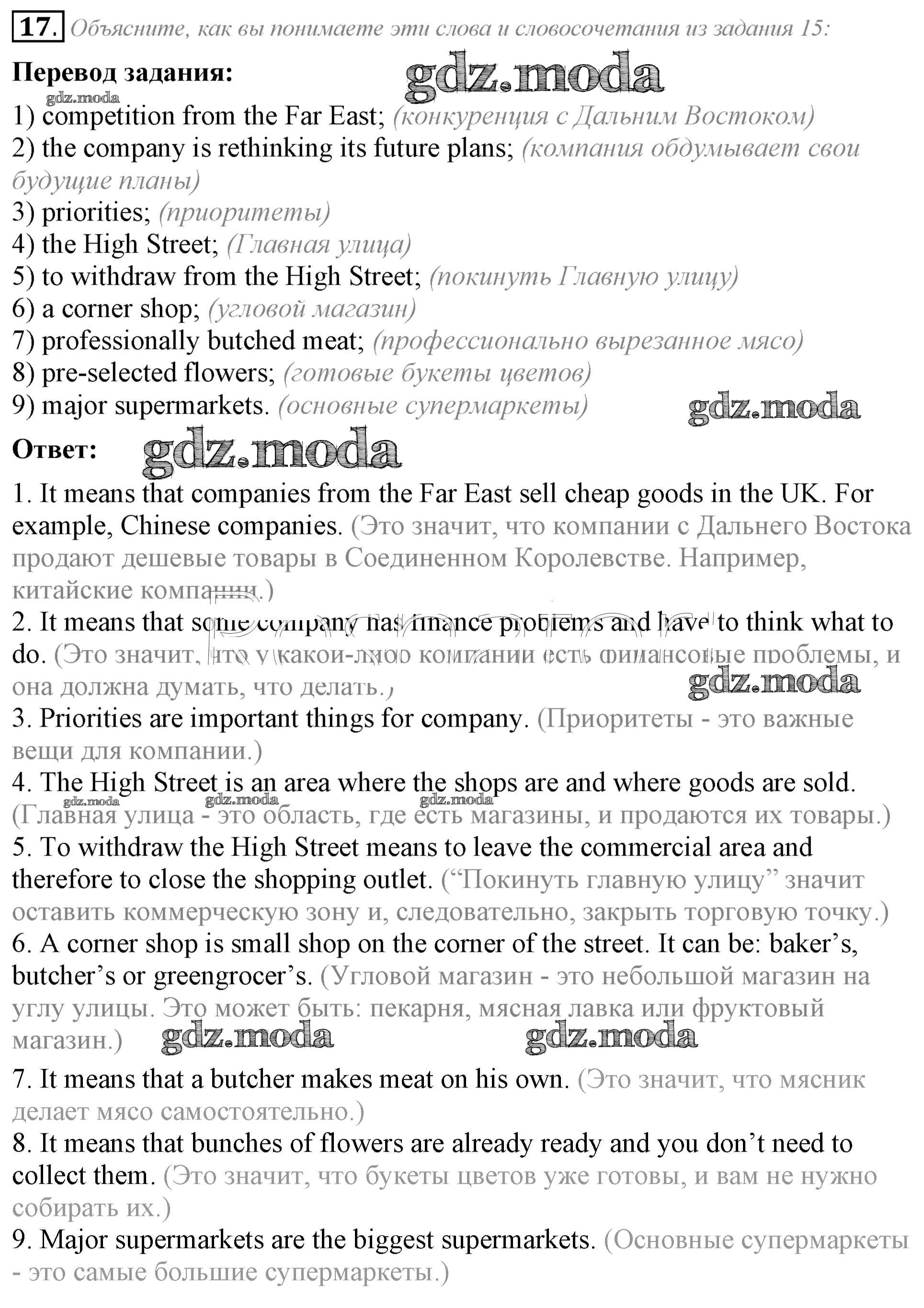 ГДЗ решение к заданию № 17 Английский язык 8 класс Афанасьева (Углубленный уровень) Просвещение 2014 Углубленный уровень ФГОС бесплатно на гдз.мода!