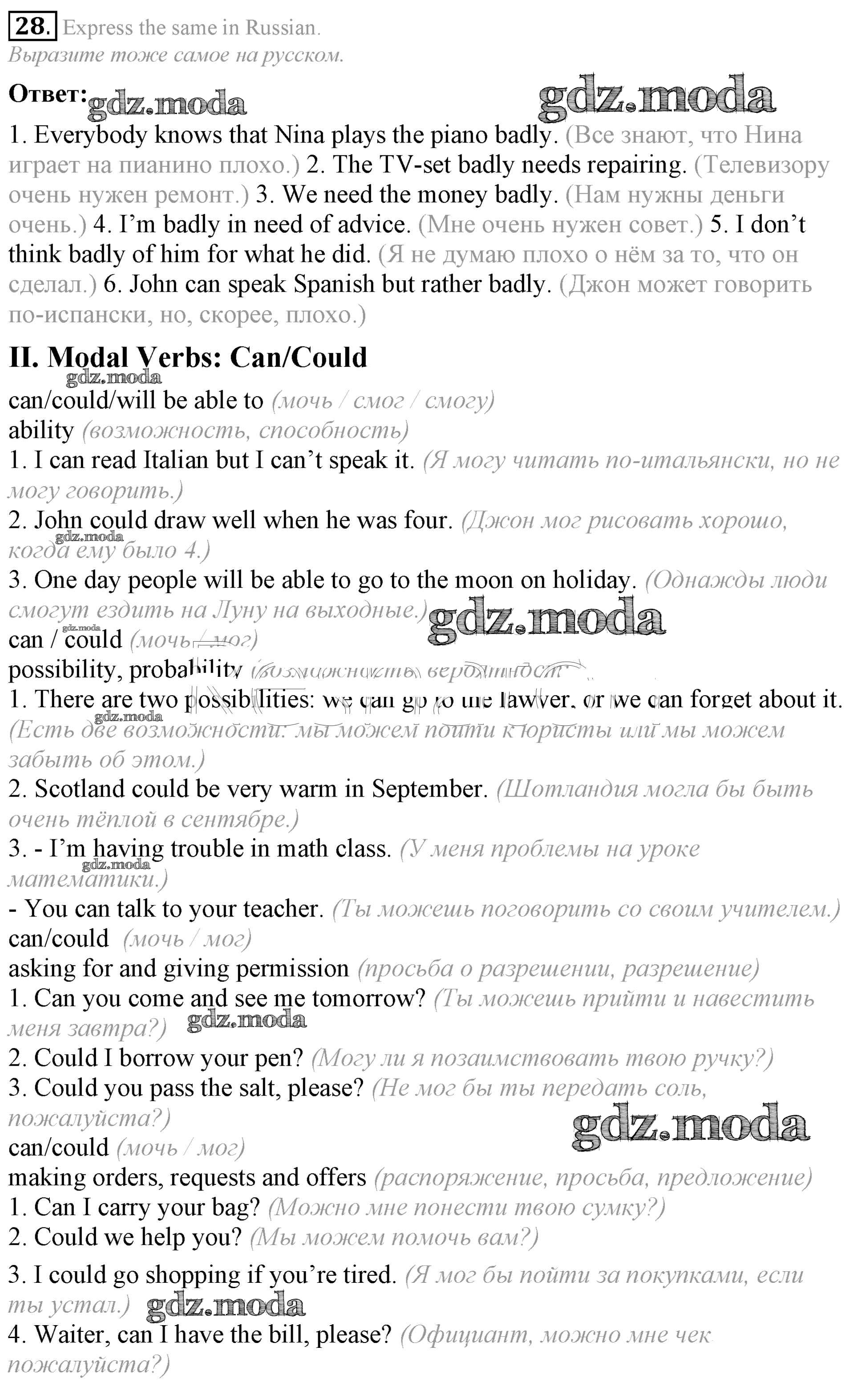 ГДЗ решение к заданию № 28 Английский язык 8 класс Афанасьева (Углубленный уровень) Просвещение 2014 Углубленный уровень ФГОС бесплатно на гдз.мода!