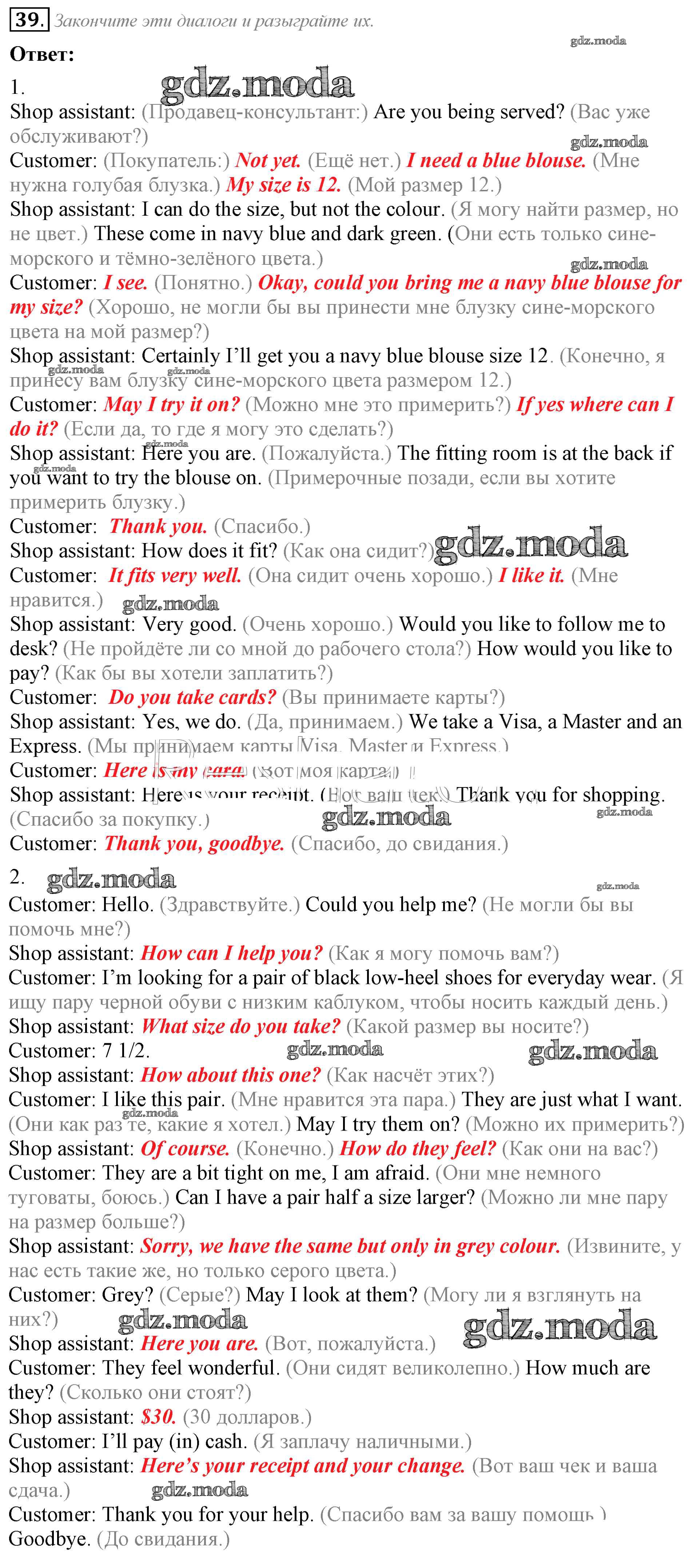 ГДЗ решение к заданию № 39 Английский язык 8 класс Афанасьева (Углубленный уровень) Просвещение 2014 Углубленный уровень ФГОС бесплатно на гдз.мода!