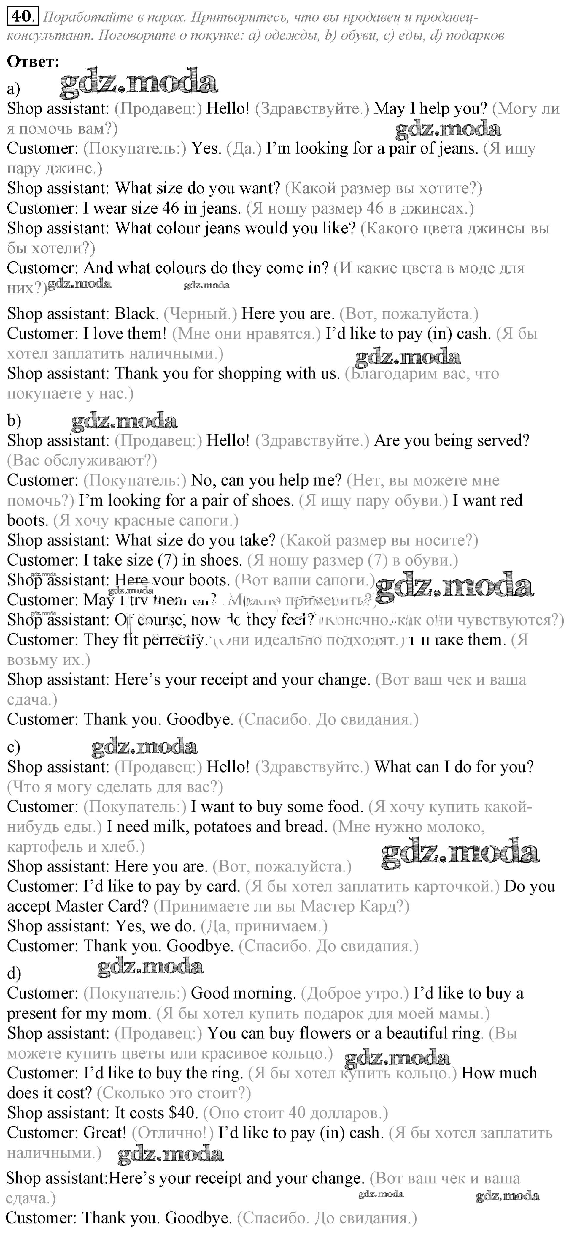 ГДЗ решение к заданию № 40 Английский язык 8 класс Афанасьева (Углубленный уровень) Просвещение 2014 Углубленный уровень ФГОС бесплатно на гдз.мода!