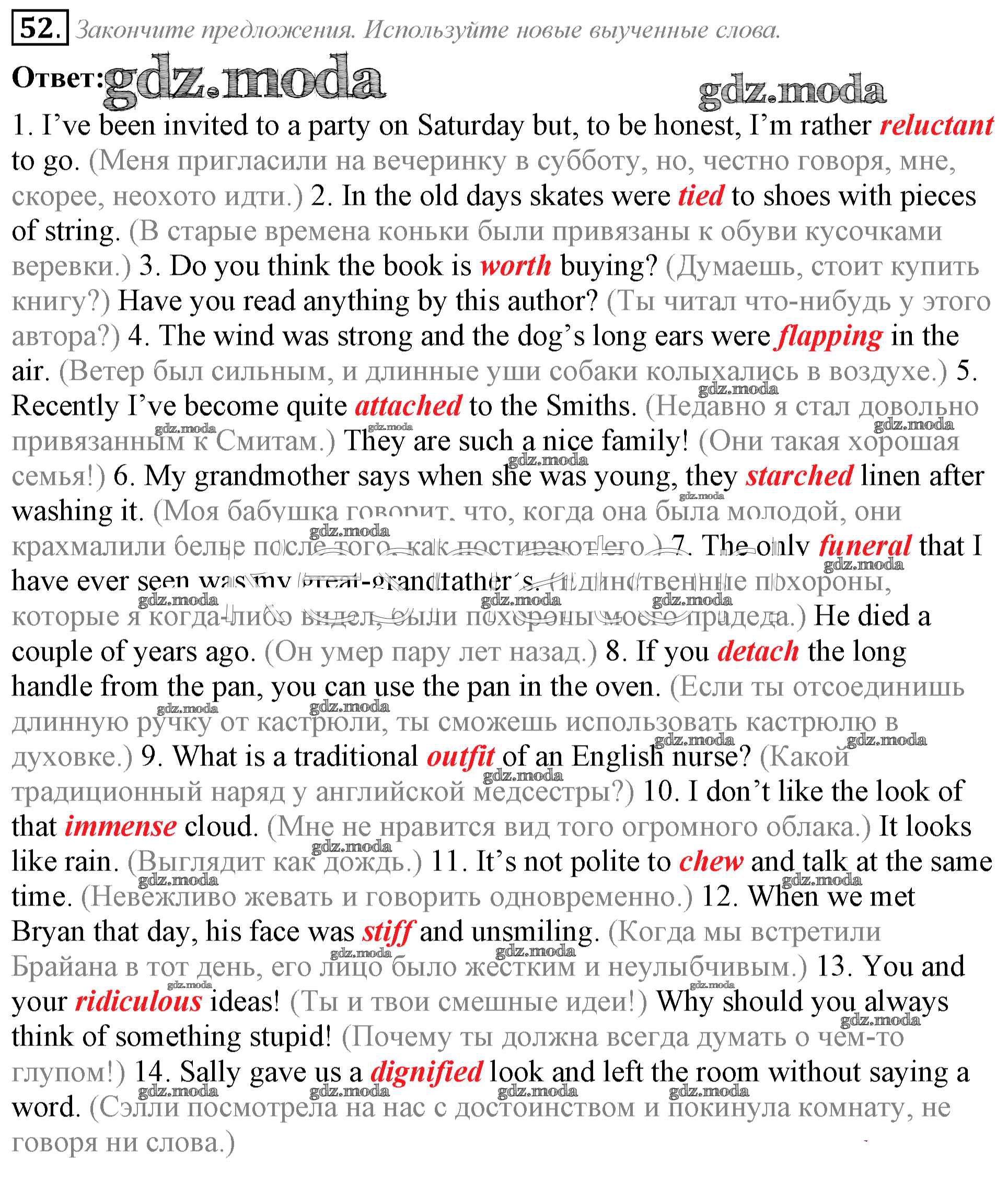ГДЗ решение к заданию № 52 Английский язык 8 класс Афанасьева (Углубленный уровень) Просвещение 2014 Углубленный уровень ФГОС бесплатно на гдз.мода!