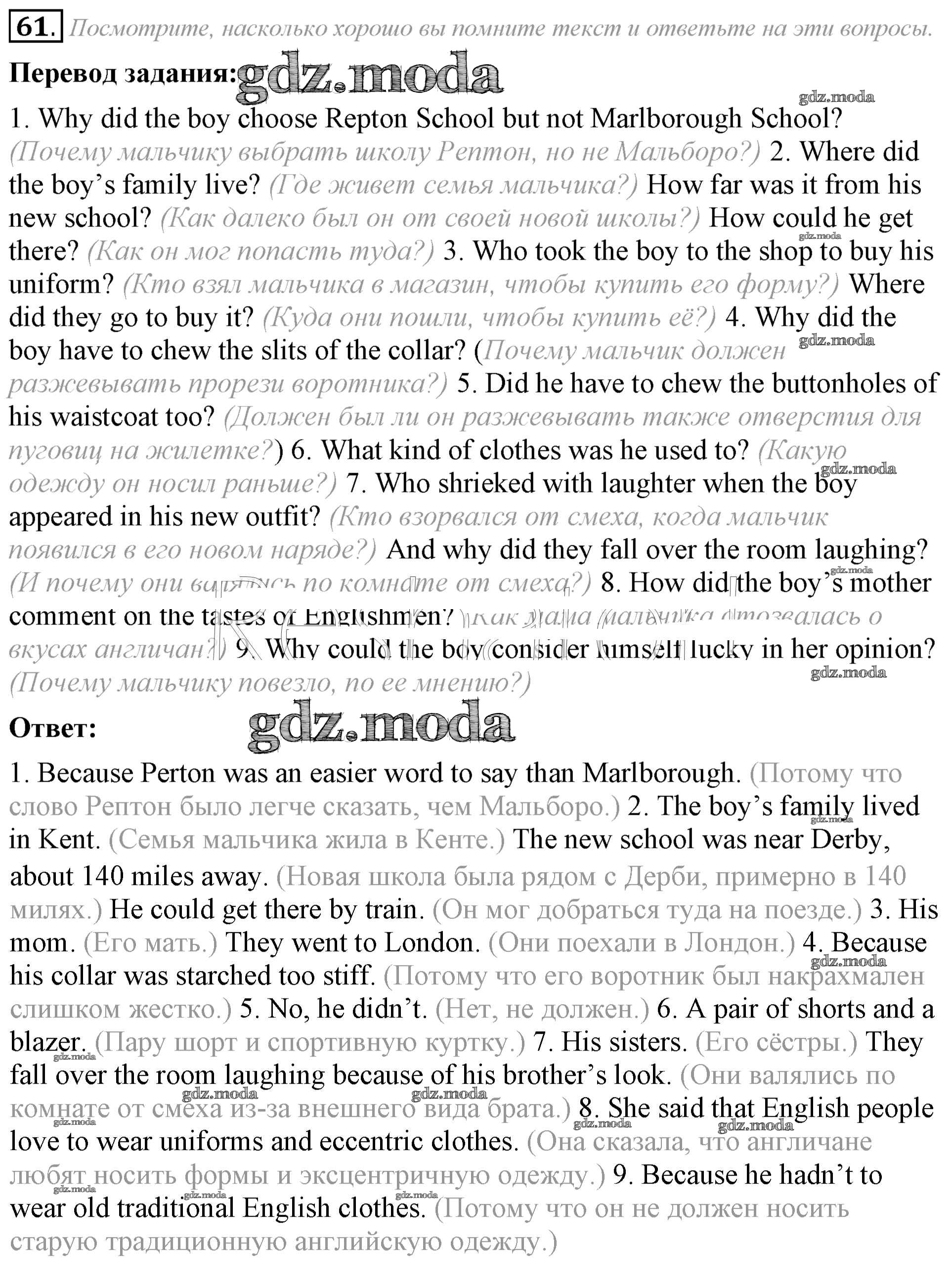 ГДЗ решение к заданию № 61 Английский язык 8 класс Афанасьева (Углубленный уровень) Просвещение 2014 Углубленный уровень ФГОС бесплатно на гдз.мода!