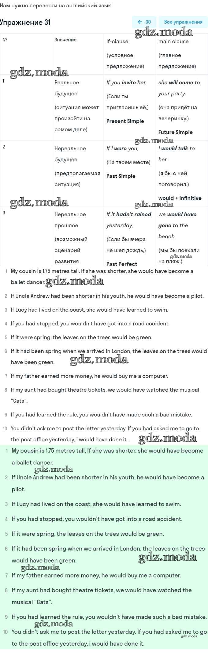 ГДЗ решение к заданию № 31 Английский язык 8 класс Афанасьева (Углубленный уровень) Просвещение 2014 Углубленный уровень ФГОС бесплатно на гдз.мода!