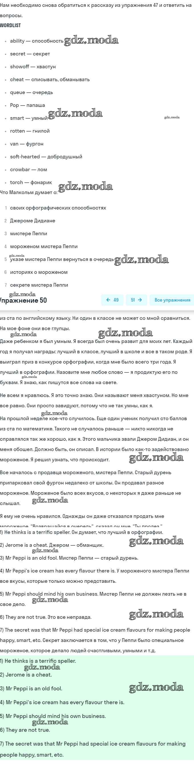 ГДЗ решение к заданию № 50 Английский язык 8 класс Афанасьева (Углубленный уровень) Просвещение 2014 Углубленный уровень ФГОС бесплатно на гдз.мода!
