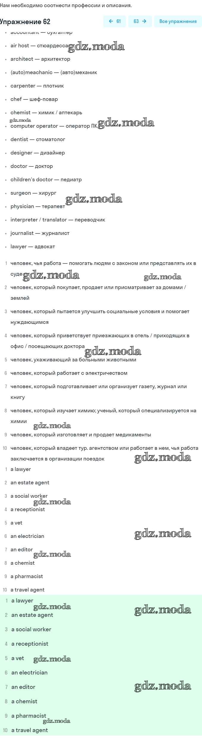 ГДЗ решение к заданию № 62 Английский язык 8 класс Афанасьева (Углубленный уровень) Просвещение 2014 Углубленный уровень ФГОС бесплатно на гдз.мода!