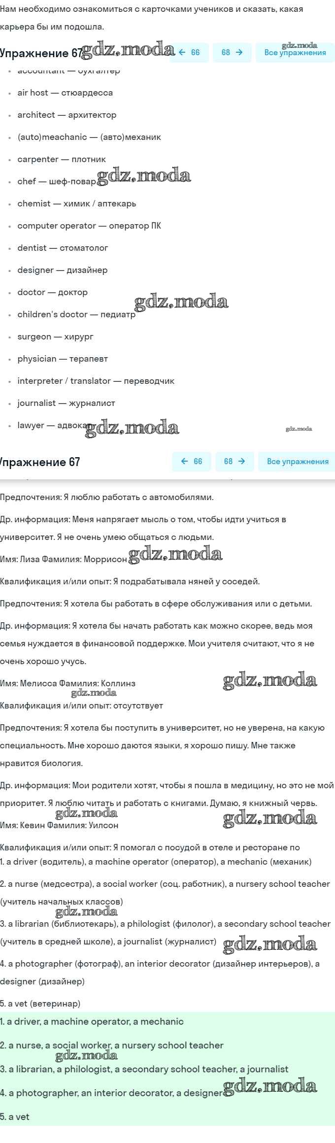 ГДЗ решение к заданию № 67 Английский язык 8 класс Афанасьева (Углубленный уровень) Просвещение 2014 Углубленный уровень ФГОС бесплатно на гдз.мода!