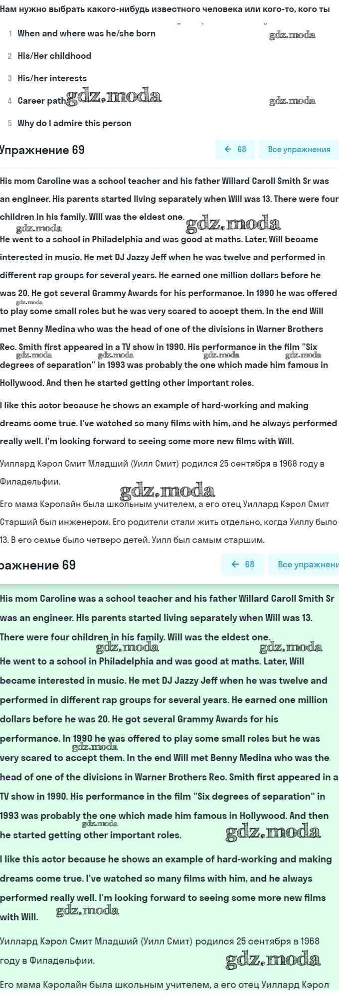 ГДЗ решение к заданию № 69 Английский язык 8 класс Афанасьева (Углубленный уровень) Просвещение 2014 Углубленный уровень ФГОС бесплатно на гдз.мода!