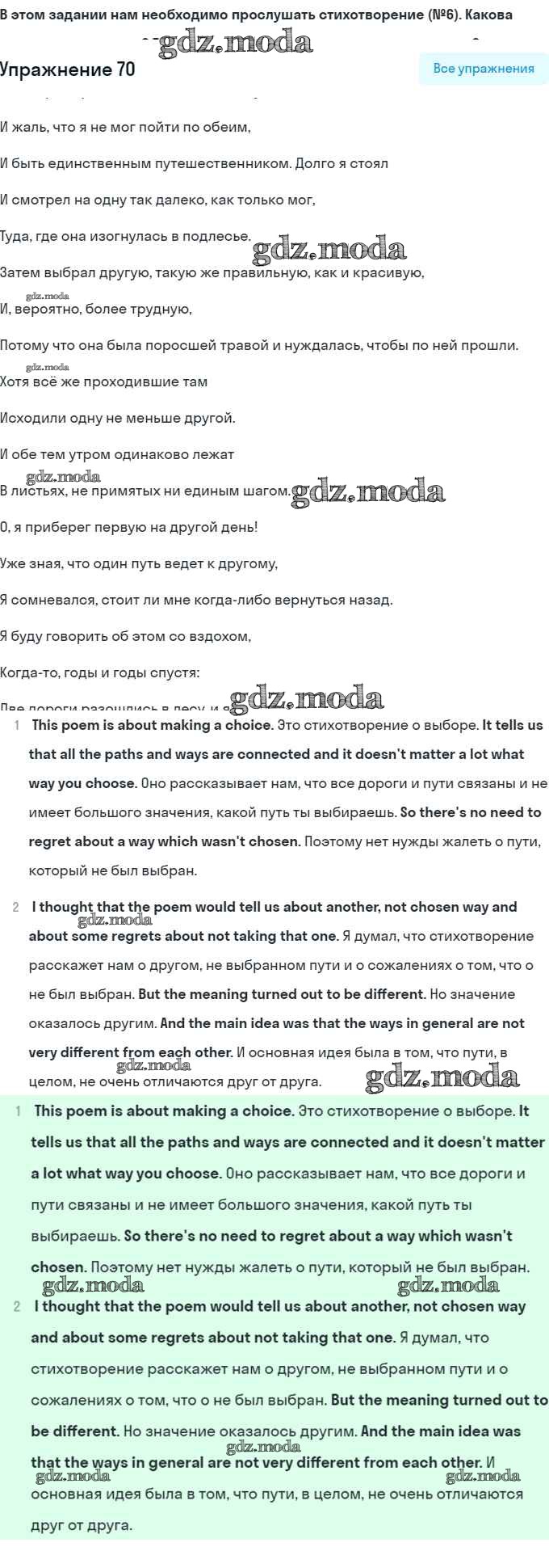 ГДЗ решение к заданию № 70 Английский язык 8 класс Афанасьева (Углубленный уровень) Просвещение 2014 Углубленный уровень ФГОС бесплатно на гдз.мода!
