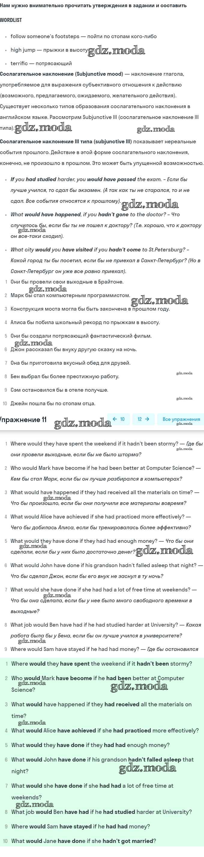 ГДЗ решение к заданию № 11 Английский язык 8 класс Афанасьева (Углубленный уровень) Просвещение 2014 Углубленный уровень ФГОС бесплатно на гдз.мода!
