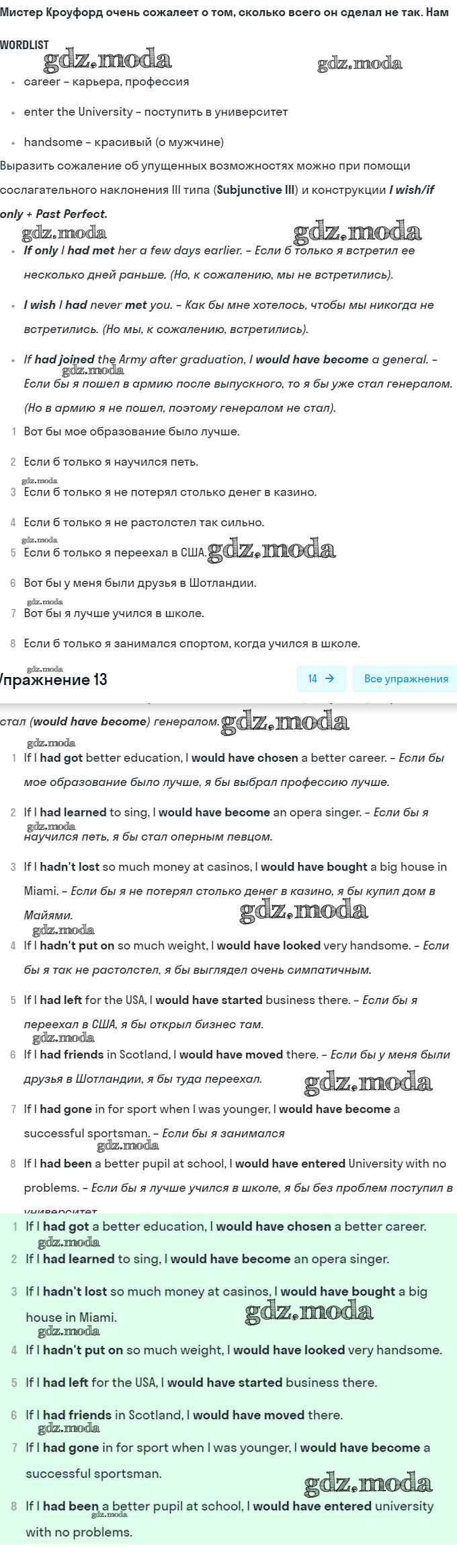 ГДЗ решение к заданию № 13 Английский язык 8 класс Афанасьева (Углубленный уровень) Просвещение 2014 Углубленный уровень ФГОС бесплатно на гдз.мода!