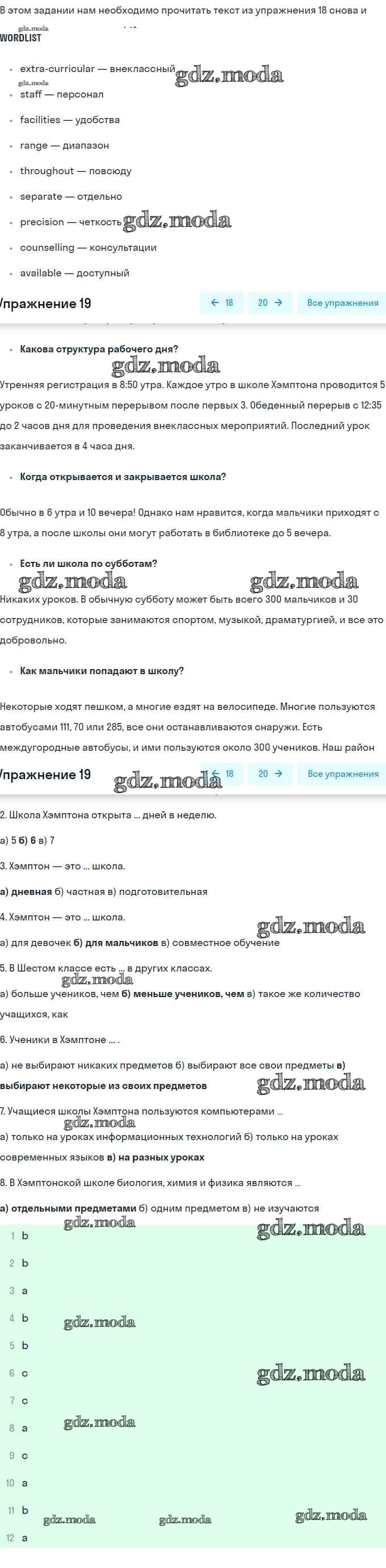 ГДЗ решение к заданию № 19 Английский язык 8 класс Афанасьева (Углубленный уровень) Просвещение 2014 Углубленный уровень ФГОС бесплатно на гдз.мода!